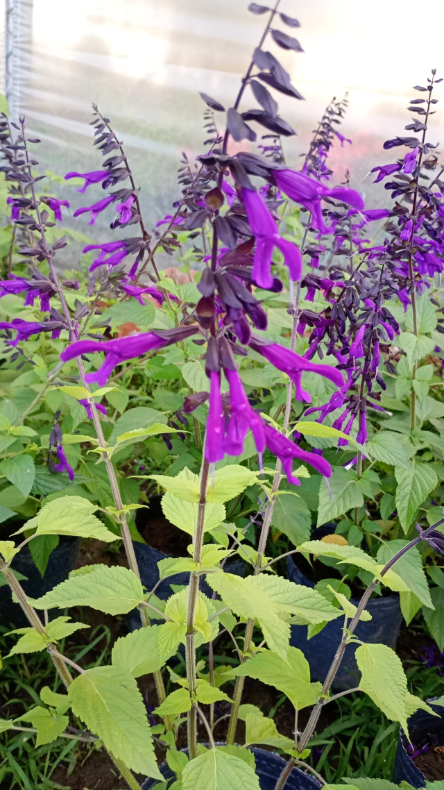 Si hablamos de impacto visual sin esfuerzo, la salvia guaranítica es clave. Flores azul profundo, follaje aromático y floración prolongada.