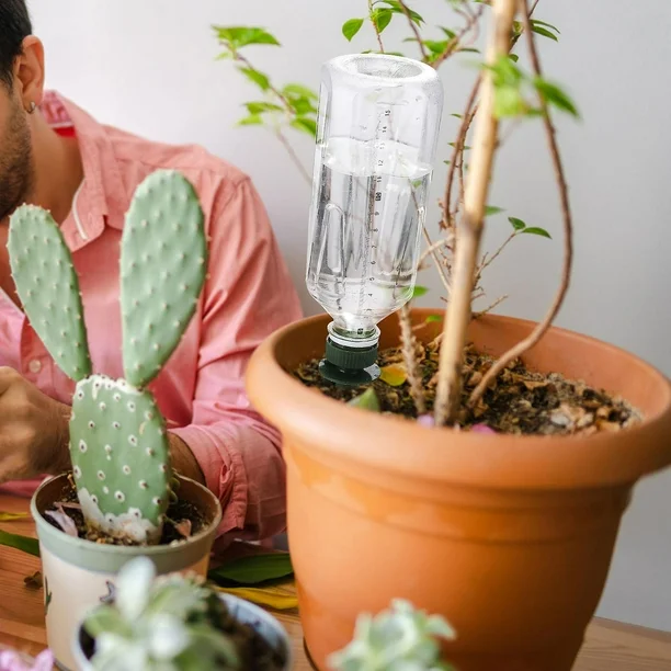 Tips reales: funciona mejor en sustratos sueltos y bien drenados. En sustratos muy compactos puede quedarse corto. Para vacaciones largas, conviene botella grande o dos puntos de riego.