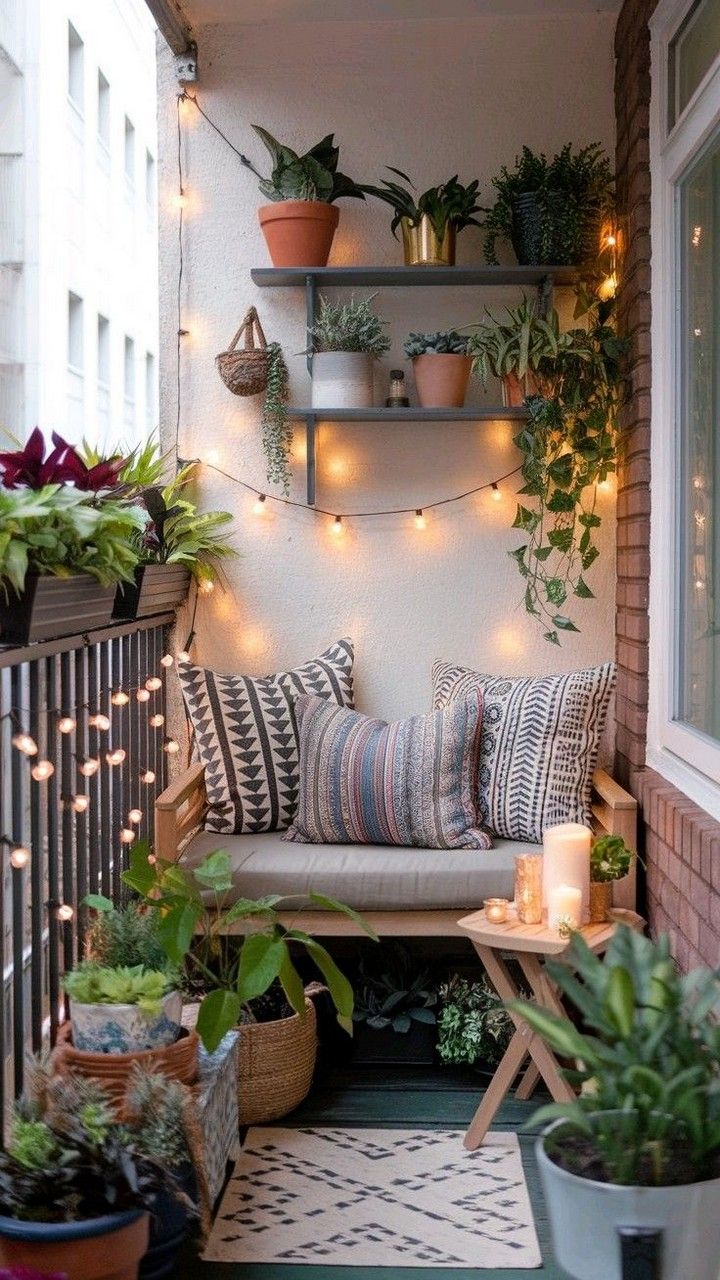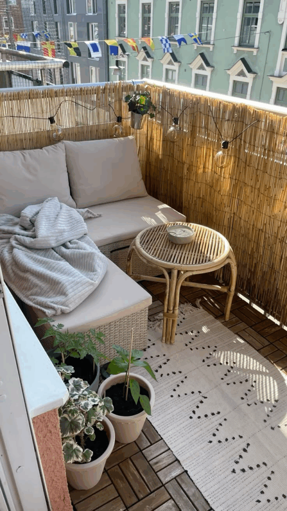 Los textiles cambian la temperatura visual del balcón: almohadones claros, mantas livianas, fundas de lino o algodón. Además de verse bien, ayudan a que las sillas de metal no quemen y a que el piso esté más amable si hay gente sentada abajo. Funciona siempre.