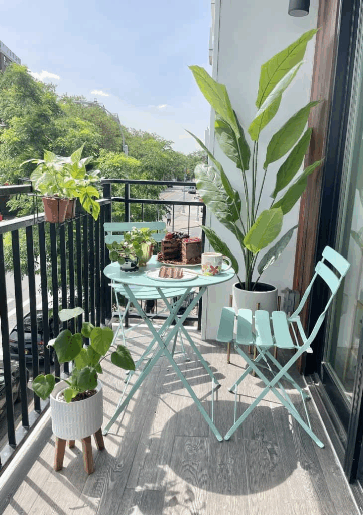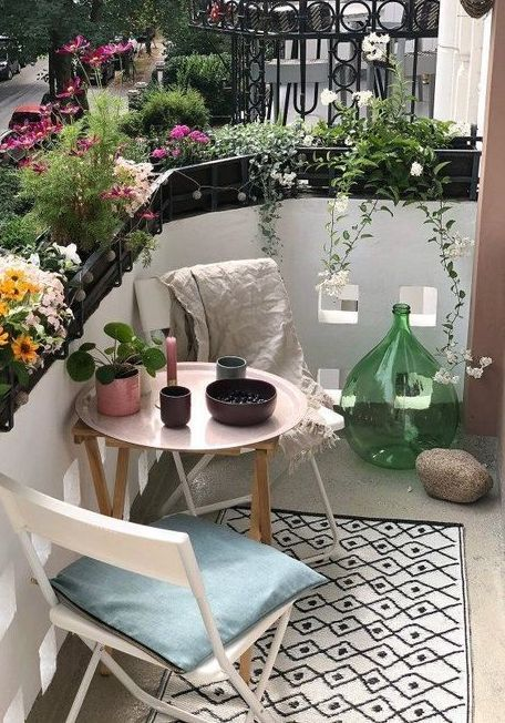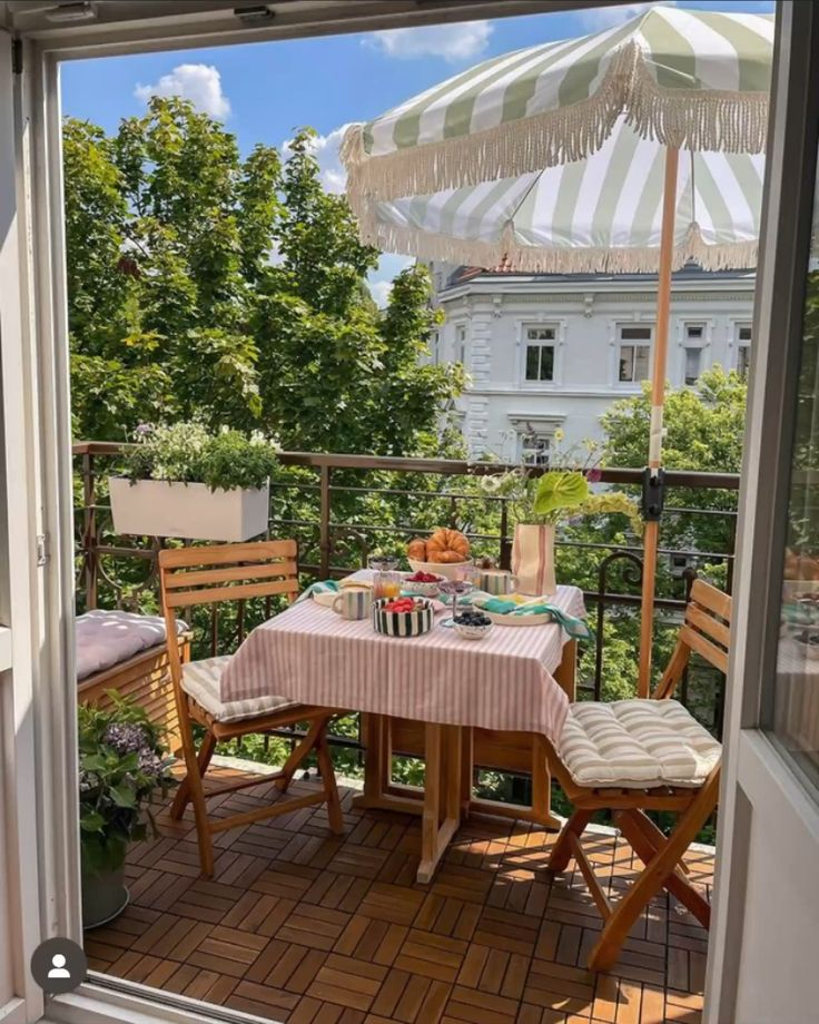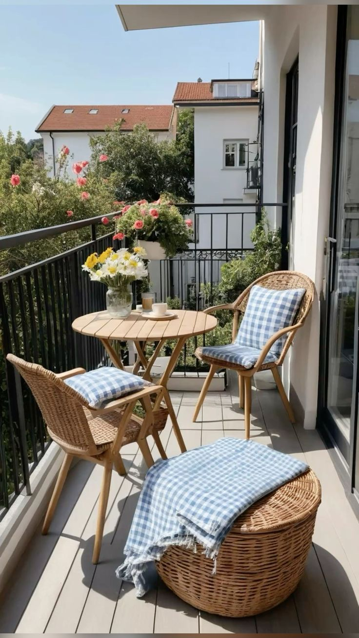 Puede ser un ramo de flores en jarrón, una mesa pintada por vos, una guirnalda de hojas secas, un mantel lindo o un centro de mesa improvisado. Son detalles mínimos que cuentan tu estilo y hacen que el balcón se sienta más hogar y menos “espacio de paso”.