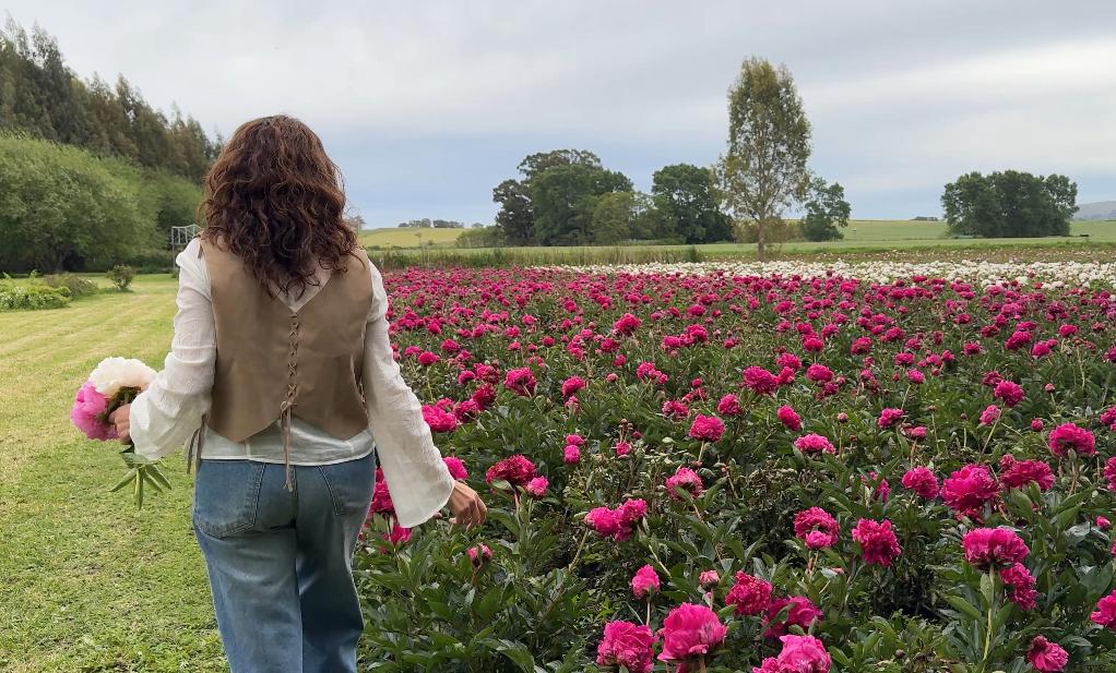 A la par de Cristián trabaja Lola, su esposa. Ambos tomaron una decisión de vida: dejaron atrás sus profesiones y cerraron sus consultorios para mudarse definitivamente al campo hace dos años. Lola nos decía que la temporada de la peonía es tan mágica como efímera: la floración arranca la última semana de octubre y se termina, casi por reloj, el 20 de noviembre.