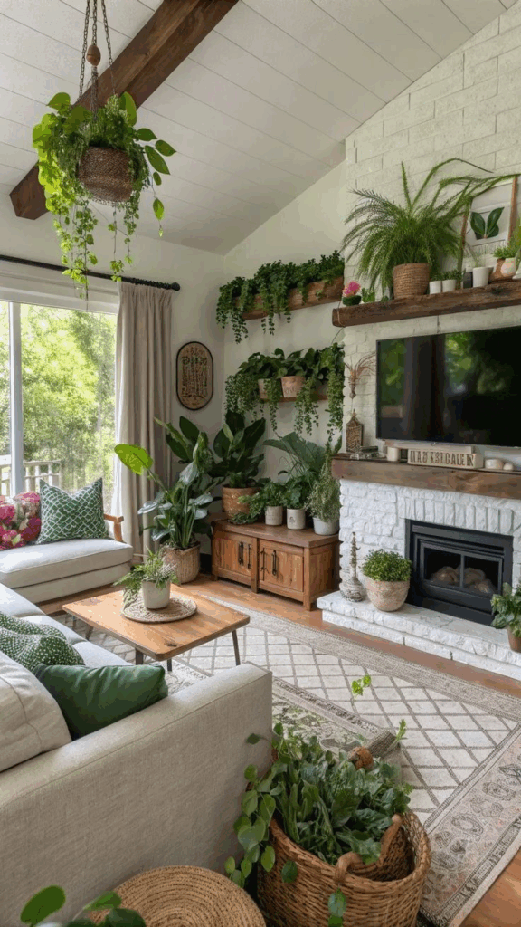 No hace falta llenar la casa de verde. A veces tres o cuatro especies bien elegidas —una de porte alto, una colgante y otra más compacta— alcanzan para generar una sensación mucho más natural en el espacio.