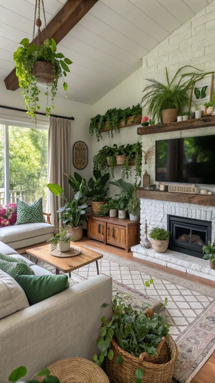En lugar de una planta aislada en una esquina, la tendencia es pensar grupos vegetales, estanterías verdes o macetas que dialoguen con el diseño del ambiente. Un conjunto de plantas de distintas alturas puede transformar un rincón entero del living o del comedor.
