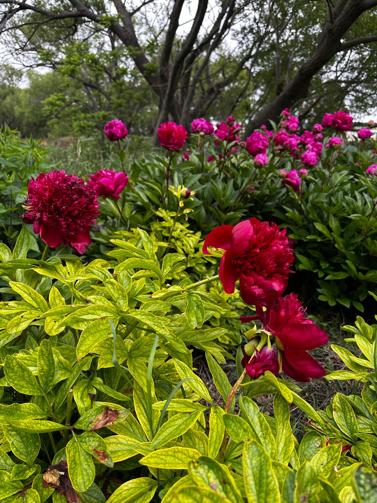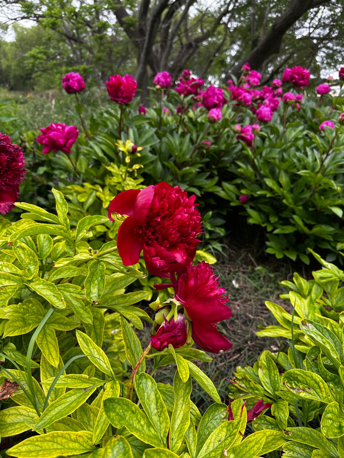 Descripción General: la peonía ‘Karl Rosenfield’ es una de las variedades de peonía más populares y apreciadas, conocida por sus impresionantes y grandes flores dobles de color rojo carmesí intenso. Es una planta perenne herbácea que forma matas densas y erguidas, con un follaje exuberante de color verde oscuro, que permanece atractivo durante toda la temporada de crecimiento.