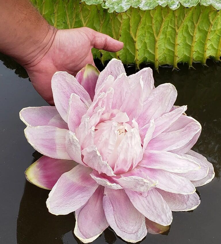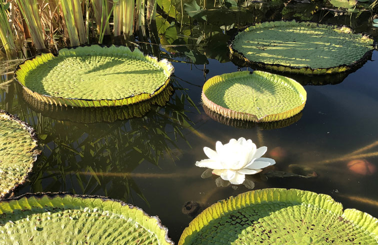 Es una de las flores acuáticas más emblemáticas del Litoral, conocida por sus enormes hojas flotantes -capaces de sostener varios kilos- y por su floración mágica y efímera.