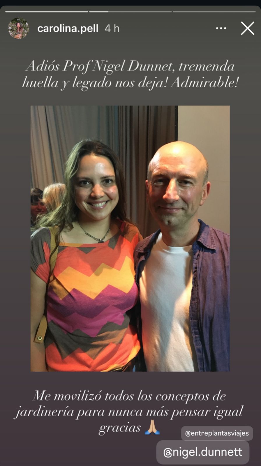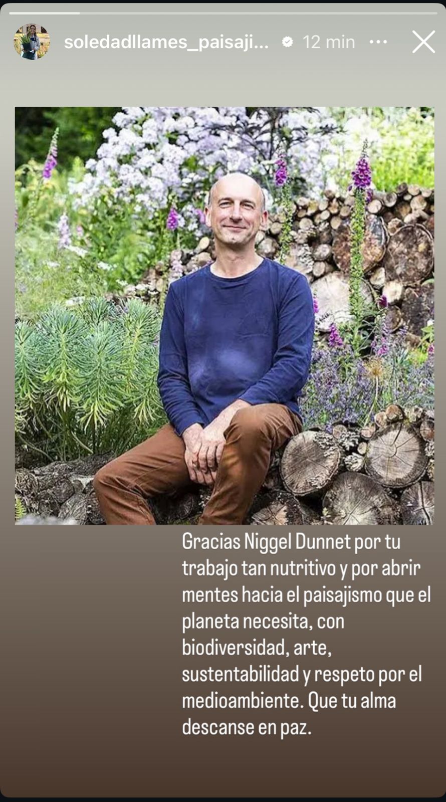 Hoy, al conocerse su muerte, las redes sociales de varios paisajistas se llenaron de mensajes. Es que Nigel no solo sabía de botánica; sabía contagiar esa pasión por lo silvestre, por lo que crece “porque sí” pero con un diseño atrás.
