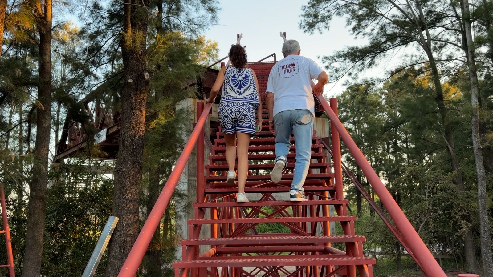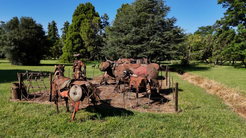 Mientras caminamos, el diseño del parque te va llevando. Pasamos por el Tambo, un sector donde las esculturas de chatarra ferroviaria del artista Carlos Regazzoni otro de los gustos “extenricos” de Oscar.